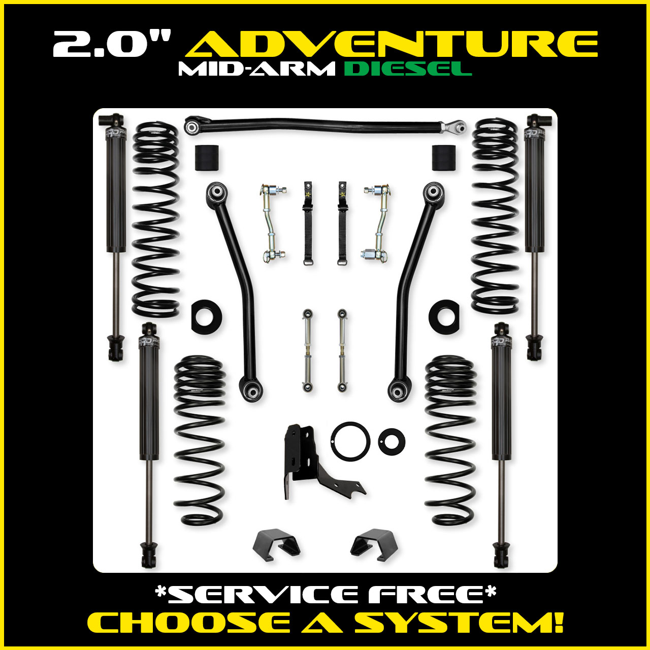 Rock Krawler 2.0" Adventure Mid-Arm Suspension System for Jeep Gladiator JT (Diesel Models)