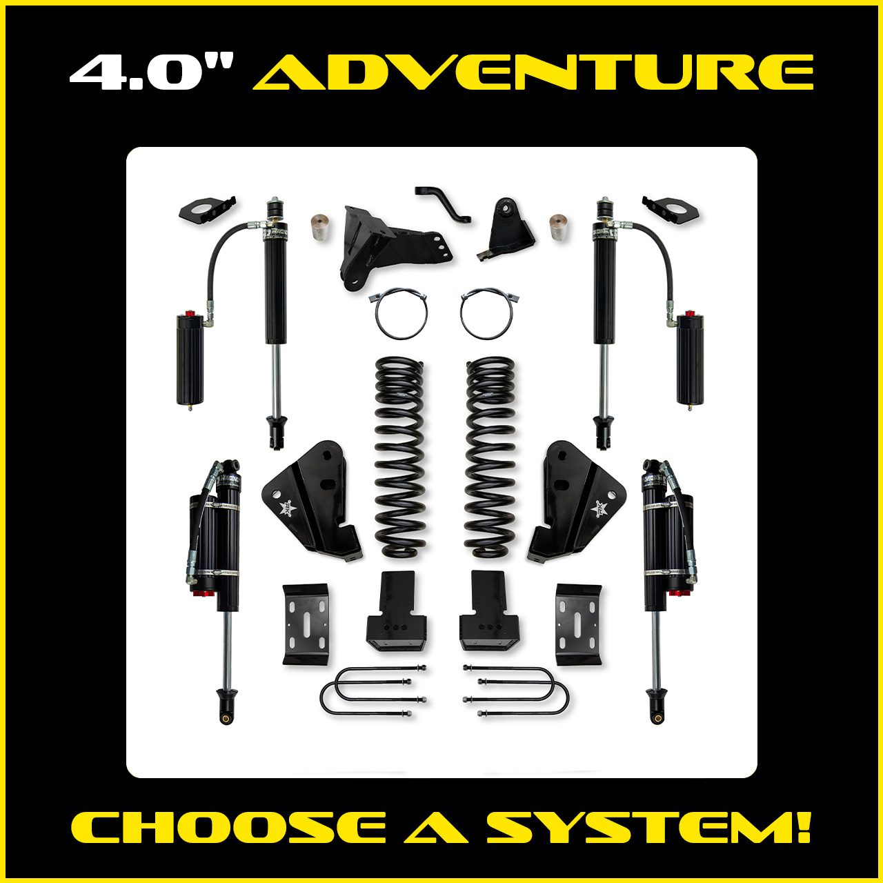 The RK Suspension 4.0" Adventure Suspension System at its core is designed with a focus on enhancing both the comfort and capability of your Super Duty. Whether you’re commuting on the street, towing, chasing your favorite race truck or tacking tough trails this system aims to provide a better overall driving experience. RK Suspension Super Duty systems are designed, tested and tuned in house for optimum performance. This starts with our true multi rate coil springs and ends with all the proper geometry corrections for driving and handling both on and off road. Our strength and durability of our components are second to none, just what your Super Duty needs! Street, Tow, Trail, RK Suspension 4.0" Adventure System has you and your Super Duty covered!