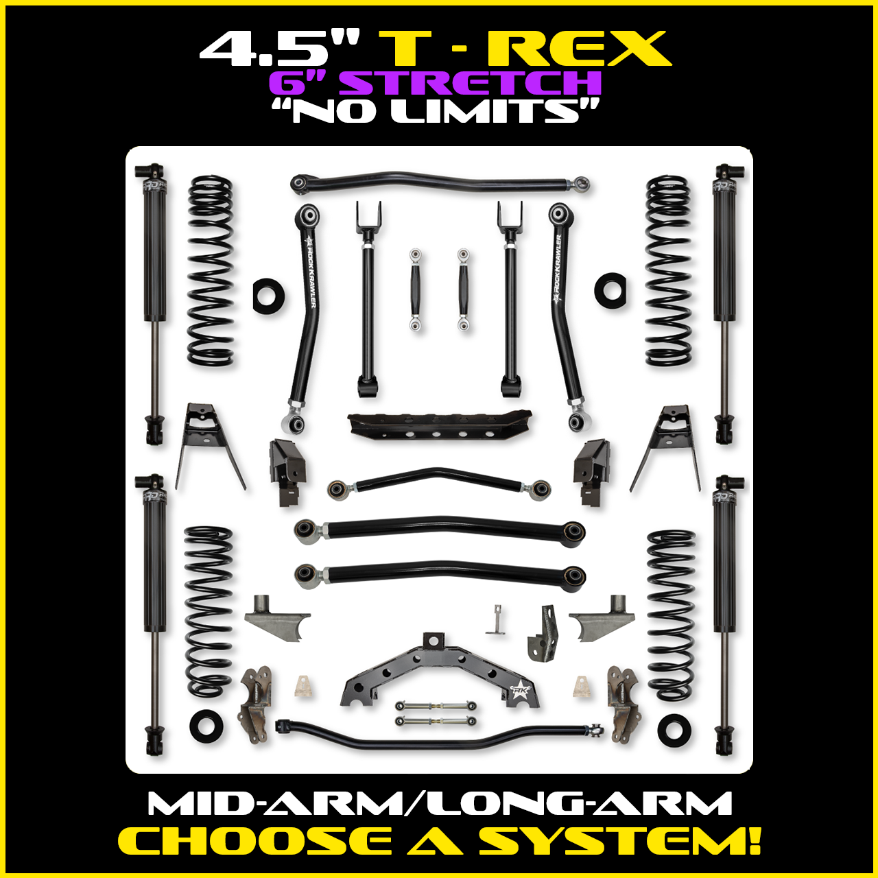 Rock Krawler 4.5" T-Rex w/ 6" Rear Stretch "No Limits" Hybrid System For Jeep Wrangler JL
